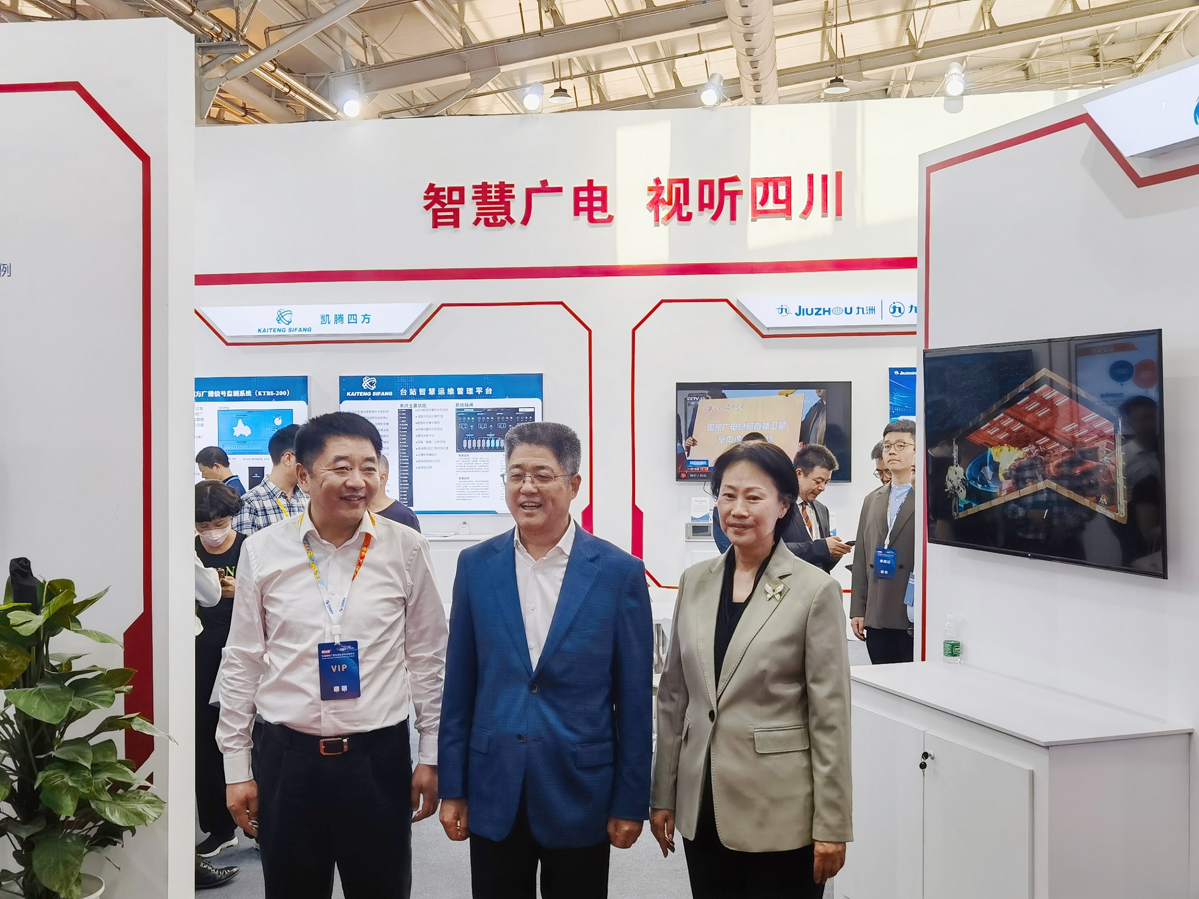 4月19日,第二十九届中国国际广播电视信息网络展览会设备展开馆。国家广播电视总局党组成员、副局长乐玉成、孟冬及相关司局领导到“智慧广电 视听四川”展区视察。受省委宣传部副部长、省广电局党组书记、局长李晓骏委托,省广电局党组成员、总工程师李翔向总局领导介绍了四川建设两个国家级产业基地(中国(成都)超高清创新应用产业基地和中国(成都)网络视听产业基地)、打造两个产业联盟(应急广播产业协会和超高清视频产业联盟)、办好两大主题活动(百部川扬、拍在四川)、促进“智慧广电 视听四川”创新发展的情况,总局领导对四川的工作成就给予高度肯定,并在“智慧广电 视听四川”展区与省广电局领导合影留念。 本次展览会,四川省是全国唯一以省广电局名义参展的省份。四川展区得到省内相关重点广电企业的支持,展出了四川广电视听产业新技术、新产品、新服务,既展示了四川品牌,也打出了四川名片,受到全国广电部门和企业的广泛关注。 本次展览会上,我省还受邀在大会的应急广播论坛、智慧运维论坛上作报告和交流,向全国业界同仁分享了四川经验和四川模式。