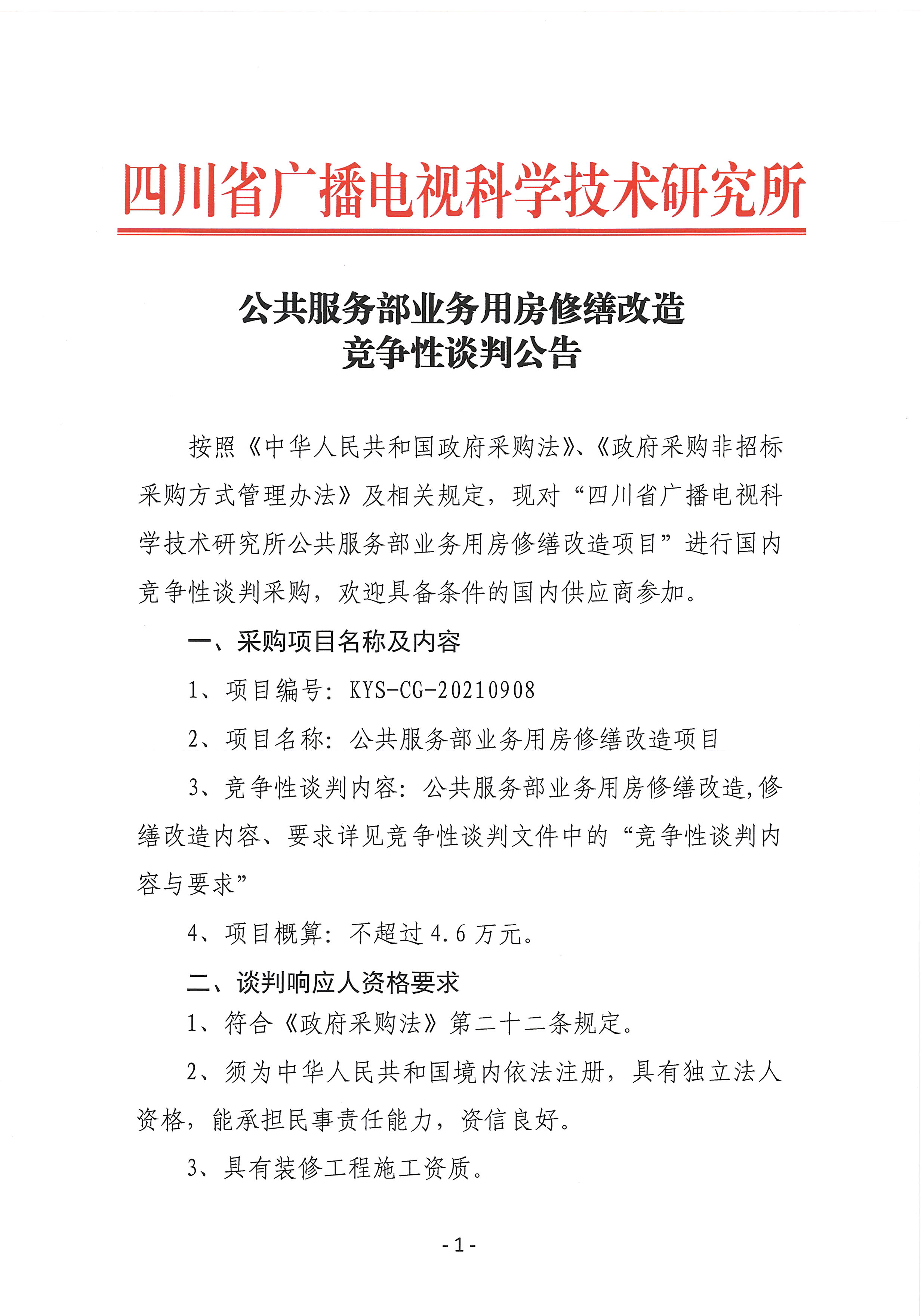 公共服务部业务房修缮改造竞争性谈判公告