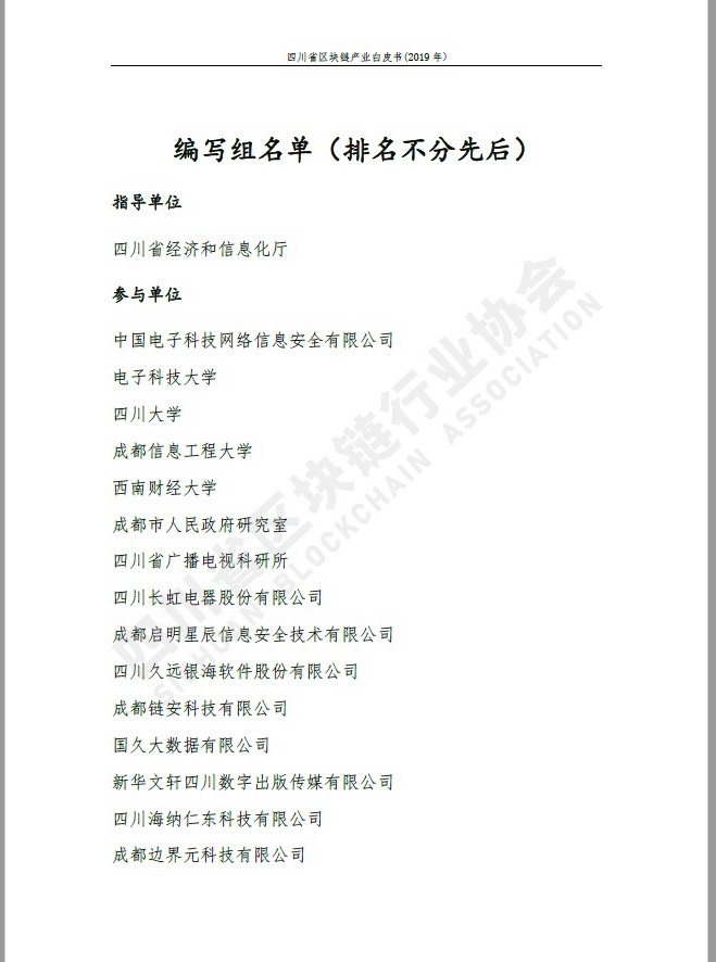 由四川省经信厅和省区块链行业协会牵头,四川省广播电视科研所积极参与到《四川省区块链产业白皮书(2019年度)》的编写任务中,组织了所总工程师朱静宁为组长的编写小组,按期高质量完成了白皮书的编写任务。