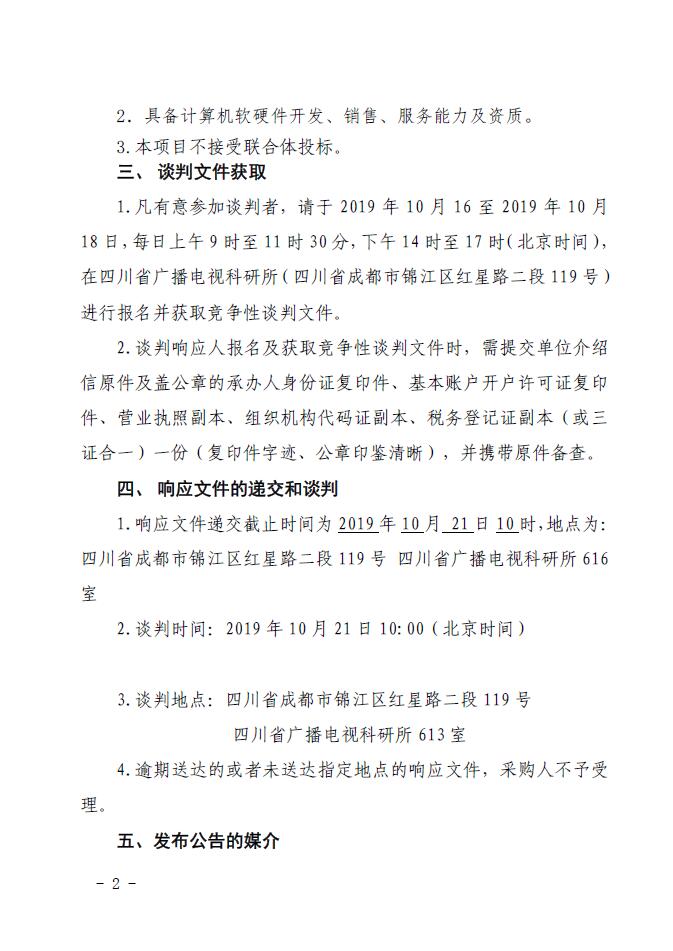 按照《中华人民共和国政府采购法》、《政府采购非招标采购方式管理办法》及相关规定,现对“四川省广播电视科研所应急广播适配器定制软件采购”进行国内竞争性谈判采购,欢迎具备条件的国内供应商参加。